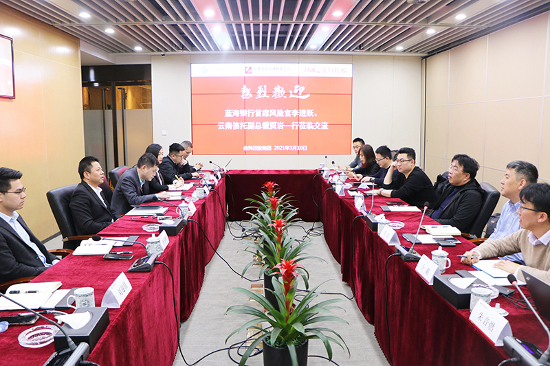 3月10日,金科控股集團首席風險官楊東升歡迎藍海銀行首席風險官李進躍、云南信托副總裁賈巖一行到訪,三方就社區(qū)金融、財富管理、供應鏈金融等業(yè)務進行洽談,一致同意在前期基礎上,進一步增強合作深度,建立全面伙伴關系。