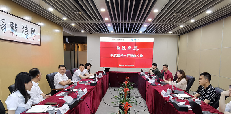 金科控股集團(tuán)座談就供應(yīng)鏈金融、金融科技等領(lǐng)域合作進(jìn)行洽談交流,金科控股集團(tuán)財(cái)務(wù)資金中心總經(jīng)理曹鵬、經(jīng)營(yíng)管理中心總經(jīng)理郝明亮、公司金融四部總經(jīng)理鄧稚也,中航信托運(yùn)營(yíng)部負(fù)責(zé)人王玥、軟件開發(fā)部負(fù)責(zé)人張甲燃、IT部負(fù)責(zé)人郝明輝、業(yè)務(wù)部負(fù)責(zé)人宮翊及雙方有關(guān)負(fù)責(zé)人陪同參加。