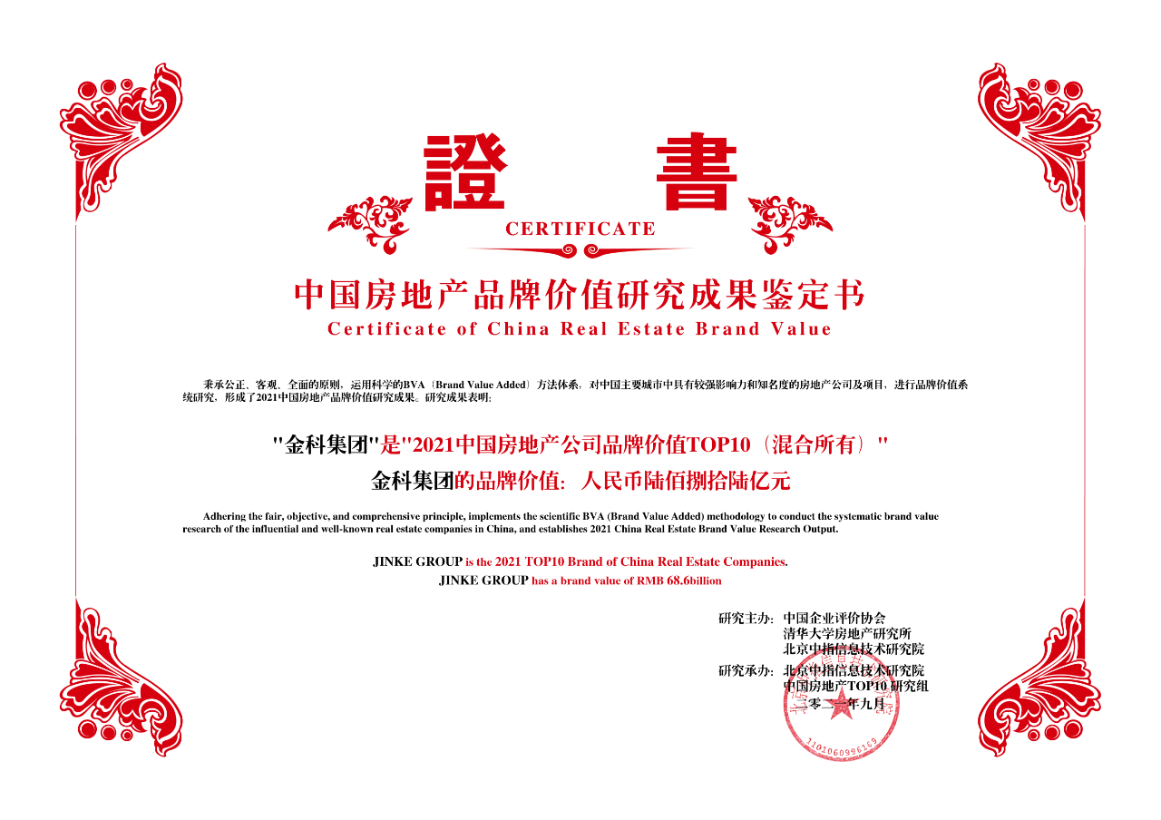 9月15日,由中國企業(yè)評價(jià)協(xié)會、清華大學(xué)房地產(chǎn)研究所、北京中指信息技術(shù)研究院主辦,北京中指信息技術(shù)研究院中國房地產(chǎn)TOP10研究組承辦的“2021中國房地產(chǎn)品牌價(jià)值研究成果發(fā)布會暨第十八屆中國房地產(chǎn)品牌發(fā)展高峰論壇”在北京召開。金科憑借優(yōu)異的市場表現(xiàn)和品牌影響力,榮獲“中國房地產(chǎn)公司品牌價(jià)值TOP10(混合所有)”第二位,這是金科連續(xù)十三年入選該榜單。2021年金科集團(tuán)品牌價(jià)值達(dá)到686億元,同比增長23.4%。