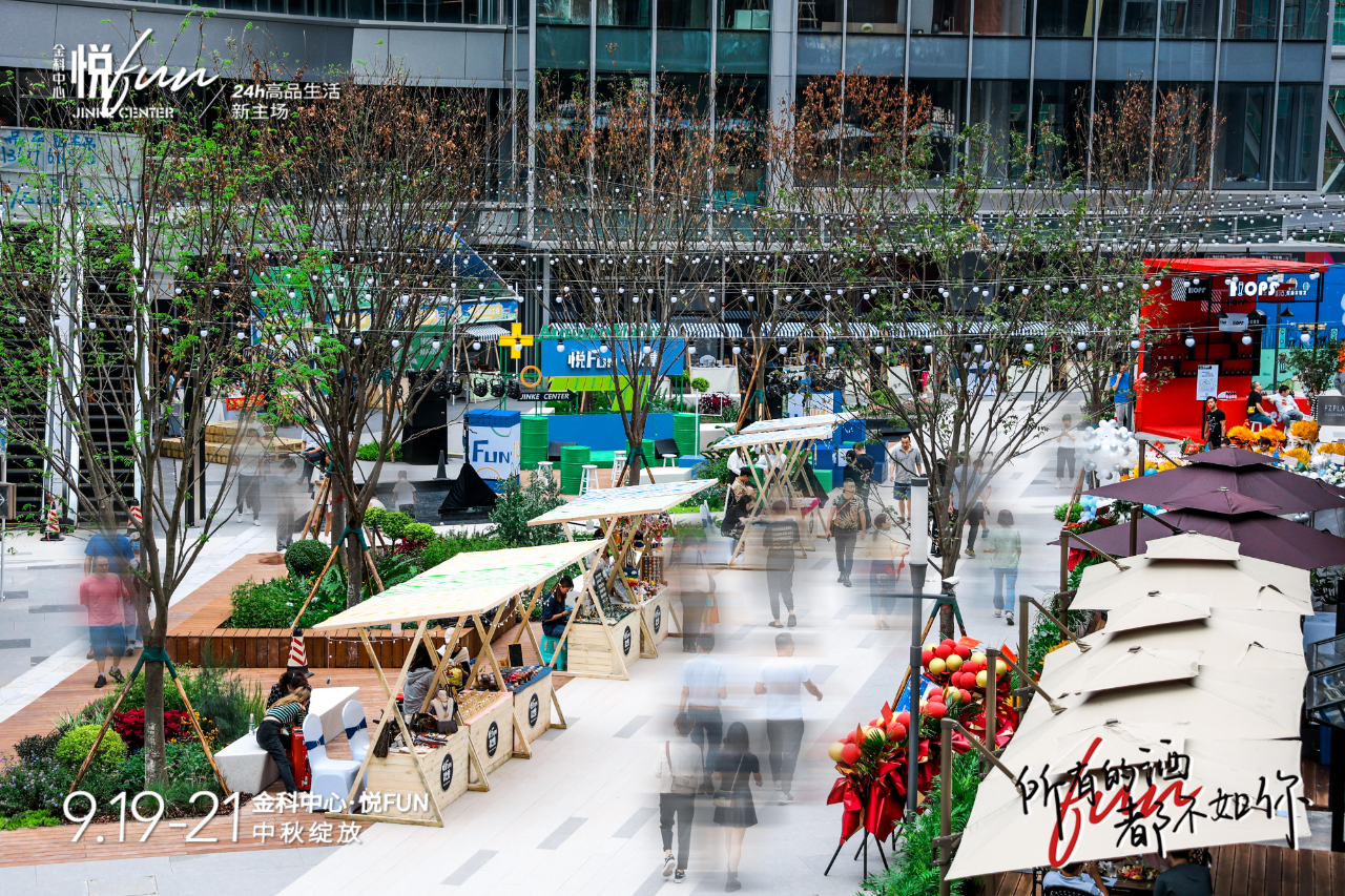 某種意義而言,金科中心·悅FUN既是一個(gè)生態(tài)、自然、開(kāi)放的商業(yè)街區(qū),又是一個(gè)美學(xué)、藝術(shù)與商業(yè)融合沉浸式體驗(yàn)之城。