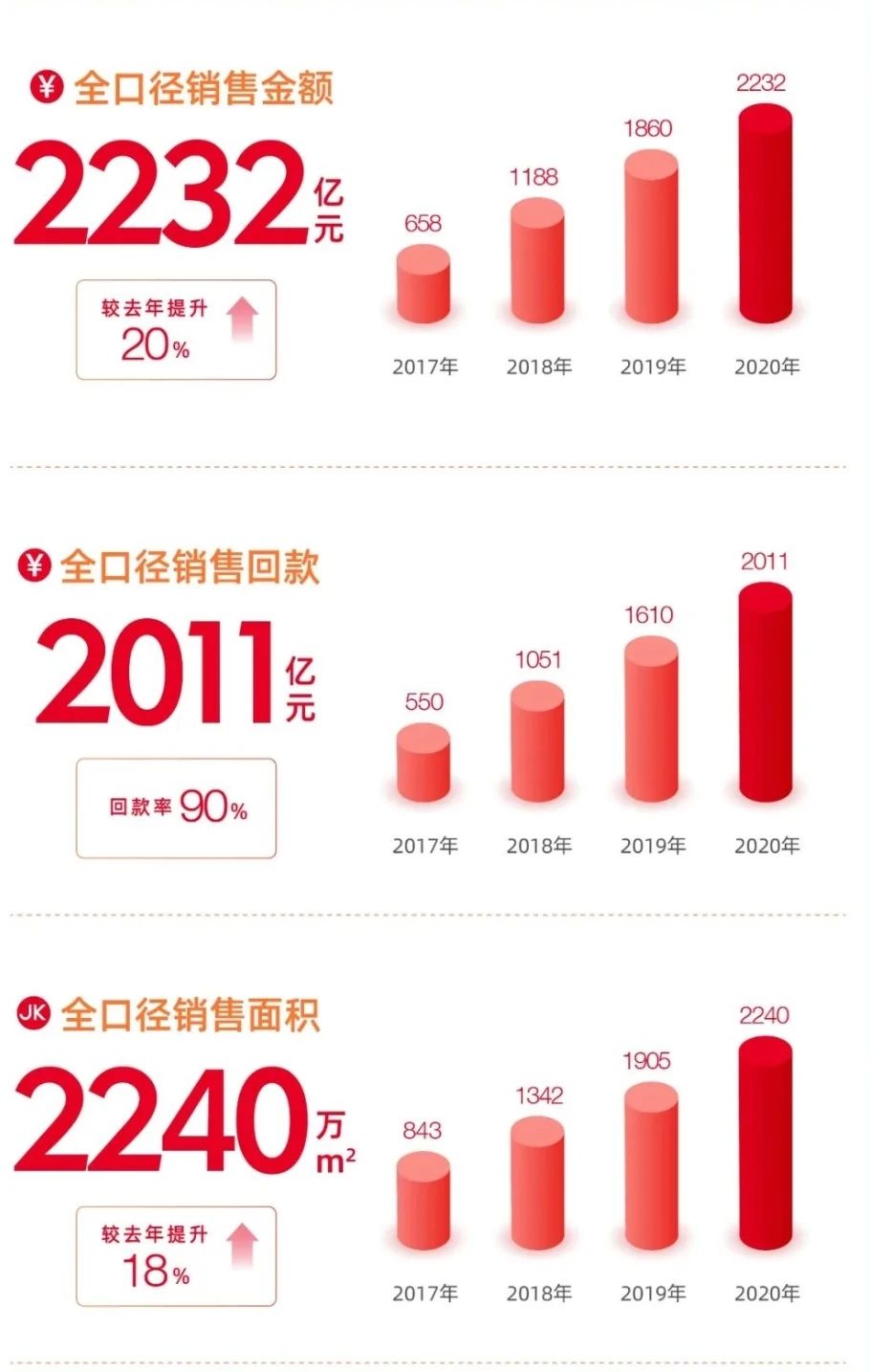 十年間,金科實(shí)現(xiàn)了跨越式發(fā)展,從排名50以外的區(qū)域型房企,一舉躍升為行業(yè)第一陣營(yíng)企業(yè):合同銷(xiāo)售金額從2011年的134.48億元上升至2020年的2232億元,增長(zhǎng)16倍;凈利潤(rùn)從2010年的10.6億元提升至2020年的97.04億元,增長(zhǎng)9.13倍;凈資產(chǎn)從2011年的54.13億元增長(zhǎng)至2020年的734.98億元,增長(zhǎng)13.57倍;十年,金科累計(jì)分紅近100億元,2020年以股權(quán)登記日收盤(pán)價(jià)計(jì)算股息率達(dá)到7.85%,持續(xù)穩(wěn)定的現(xiàn)金分紅已經(jīng)讓金科成為資本市場(chǎng)價(jià)值回報(bào)的典范。