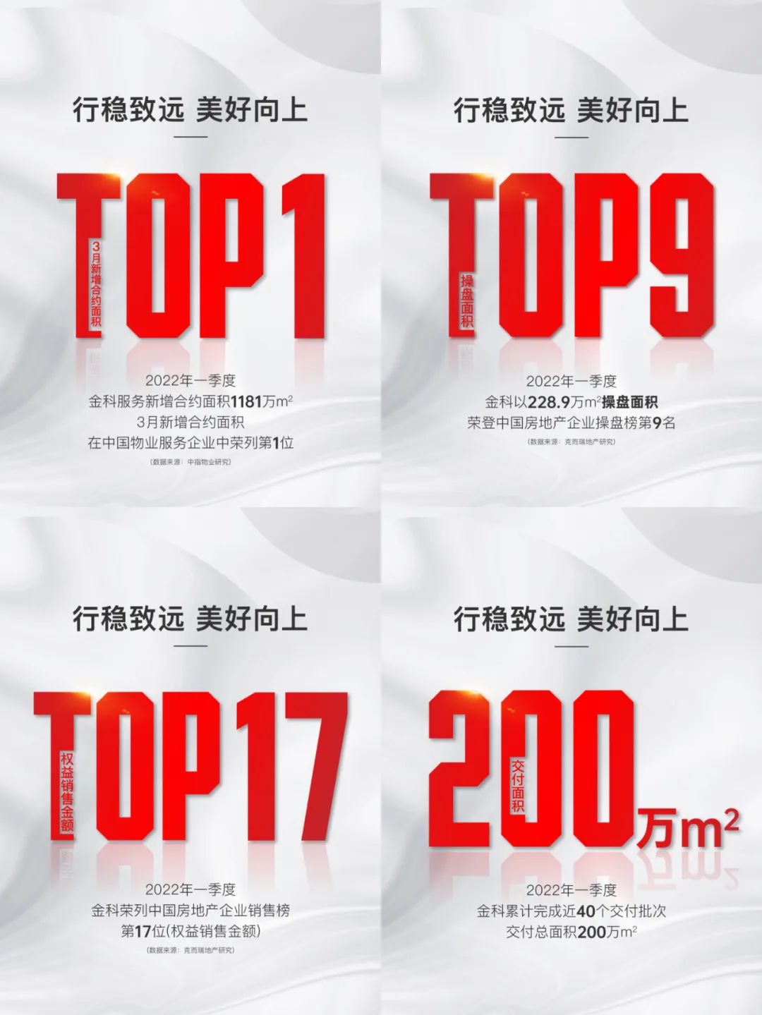 4月初,金科另公布了一組數(shù)據(jù),從銷售力、市占率、服務(wù)力、交付力等方面呈現(xiàn)企業(yè)一季度的經(jīng)營(yíng)業(yè)績(jī):權(quán)益銷售金額位列中國(guó)房地產(chǎn)企業(yè)銷售榜第17位、操盤面積榮登中國(guó)房地產(chǎn)企業(yè)操盤榜第9名、3月新增合約面積在中國(guó)物業(yè)服務(wù)企業(yè)中榮列第1位,而在交付方面,累計(jì)完成近40個(gè)交付批次、交付總面積200萬(wàn)平方米……