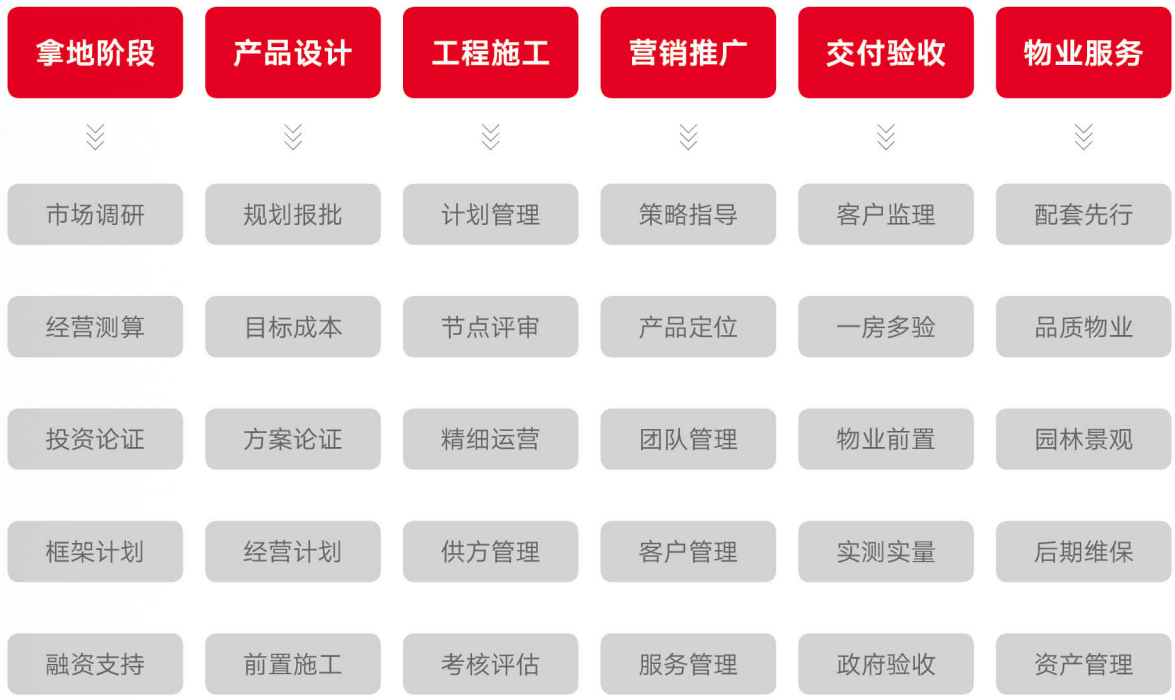 以“做精業(yè)務(wù)、做實(shí)體系、做強(qiáng)品牌”三步走循序漸進(jìn),從“前臺(tái)投資、中臺(tái)運(yùn)營(yíng)、后臺(tái)保障”建立完善的業(yè)務(wù)體系,以“多措并舉、因城施策、區(qū)域深耕、城市聚焦”的策略形成差異化的競(jìng)爭(zhēng)能力,力求最終將代建業(yè)務(wù)建設(shè)成為集出資、融資、擔(dān)保、設(shè)計(jì)、產(chǎn)業(yè)、商業(yè)、招商、運(yùn)營(yíng)、物管、咨詢?yōu)橐惑w的金科“代建+”服務(wù)品牌,打造企業(yè)新的利潤(rùn)增長(zhǎng)點(diǎn),進(jìn)一步整合產(chǎn)業(yè)鏈生態(tài)圈,保持行業(yè)競(jìng)爭(zhēng)優(yōu)勢(shì)。