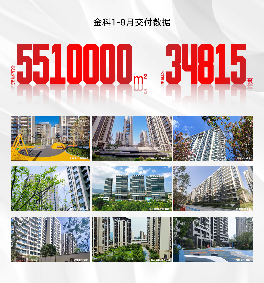 今年1-8月,金科累計交付總面積約551萬平方米,累計交付總套數(shù)34815套,交付范圍覆蓋全國56個城市。自2022年保交房工作開展以來,金科累計交付總套數(shù)超26.2萬套,累計交付總面積約3977萬平方米,保交房進度遠高于行業(yè)平均水平。根據(jù)公司計劃,2024年將實現(xiàn)交付面積不低于1200萬平方米,交付套數(shù)不少于7.5萬套,交付達成率92%以上,力爭達到95%,其中2024年金科在重慶范圍保交房將全面完成,2025年二季度全面完成全國范圍內(nèi)保交房任務(wù)。