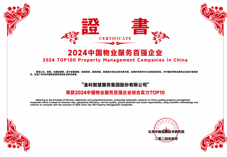 4月18日,“2024年中國物業(yè)服務(wù)百強企業(yè)榜單”正式發(fā)布。金科服務(wù)連續(xù)第9年蟬聯(lián)中國物業(yè)服務(wù)百強企業(yè)TOP10,成功躋身前八;并位列“滿意度領(lǐng)先企業(yè)”和“服務(wù)質(zhì)量領(lǐng)先企業(yè)”兩大榜單的前二。